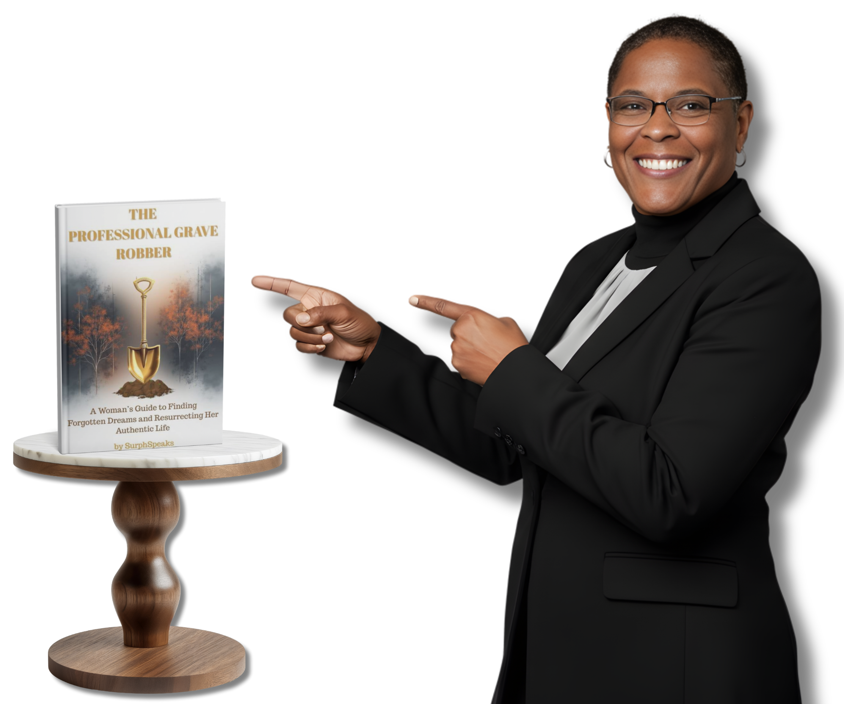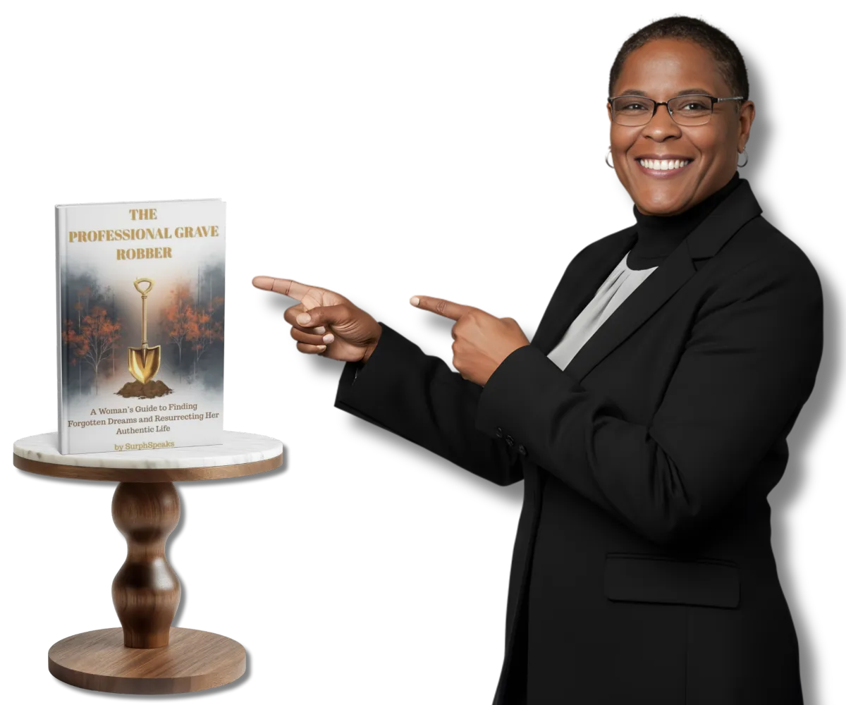 "SurphSpeaks is a transformational speaker, coach, and author whose life’s mission is to help women unearth what life buried, reclaim their forgotten power, and rise into the legacy they were created to live. Revered as “The Professional Grave Robber”. SurphSpeaks guides women through the muddy, messy layers of survival and into the clarity, peace, and purpose of their resurrection season.